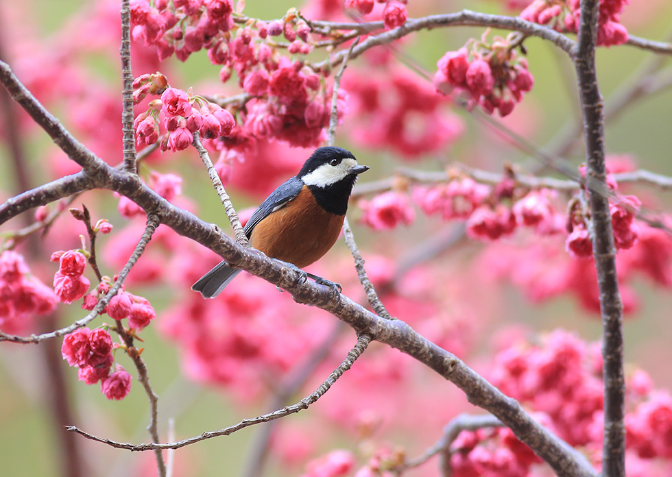 烏頭翁、台灣朱雀(酒紅朱雀) . 赤腹山雀 . 繡眼畫眉 . 竹雞 . 白頭鶇 . 小翼鶇 . 灰鷽等 .