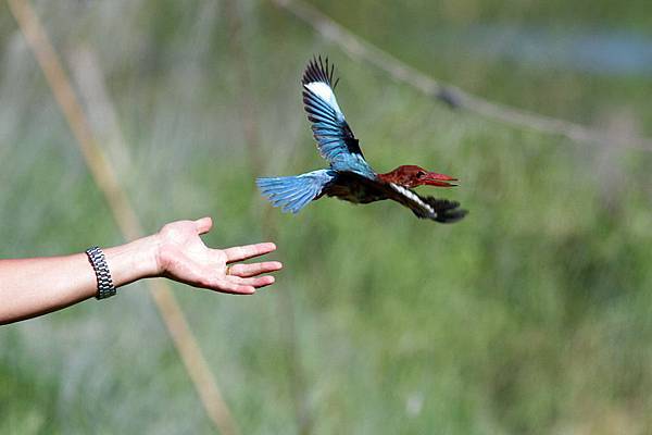 救了一羽被鳥網所網住的蒼翡翠 . 成功的救援行動 . 除了能近距離觀察這羽漂亮的翡翠科 . 更拯救了一條寶貴的鳥生命 . 為金門