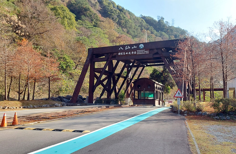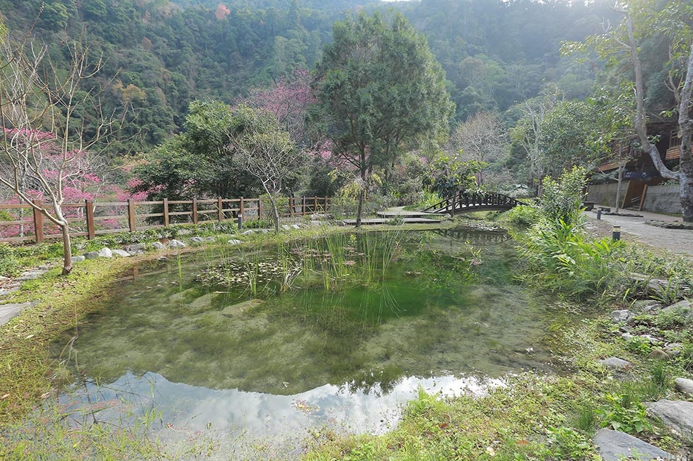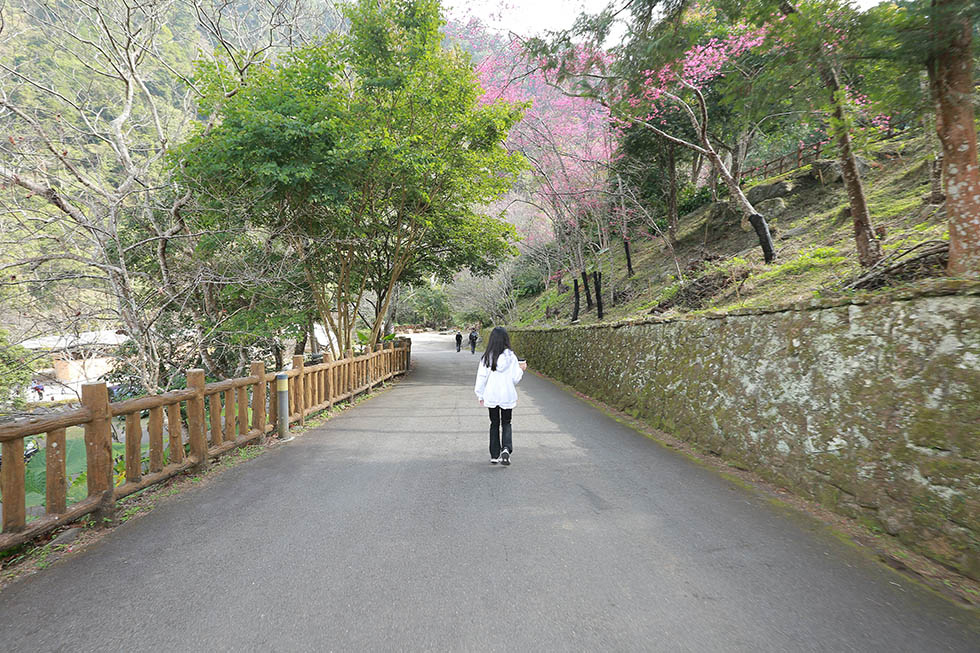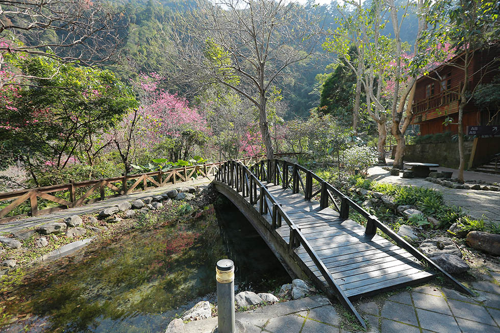 八仙山園區的迎賓橋 . 今年1月太冷 . 導致山櫻花的花期延後 . 這回來八仙山櫻花僅開不到4成 . 雖然有點可惜 .