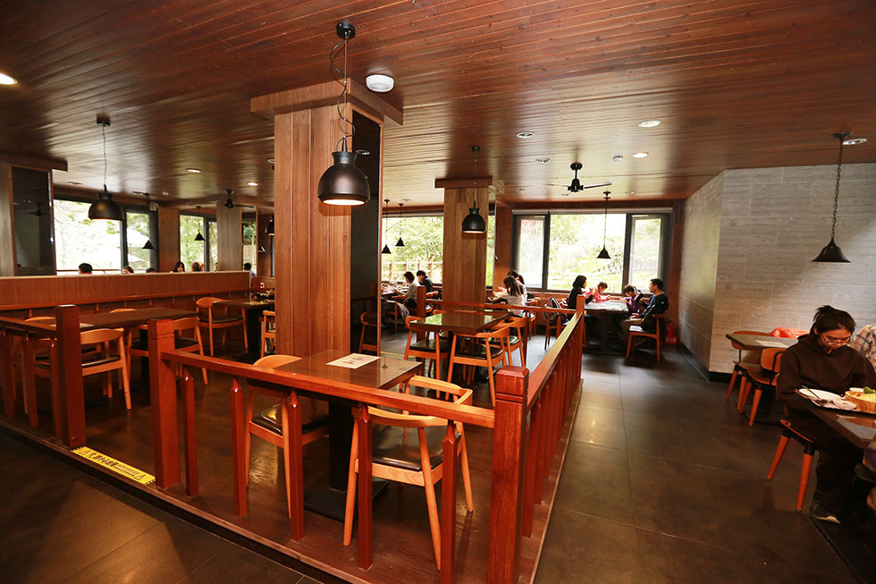 餐廳內部 . 住宿區也是在這裡用餐 . 時近中午 . 友人打算在裏頭用餐 . 若嫌餐點貴 . 可以出園到谷關大街上也可 .