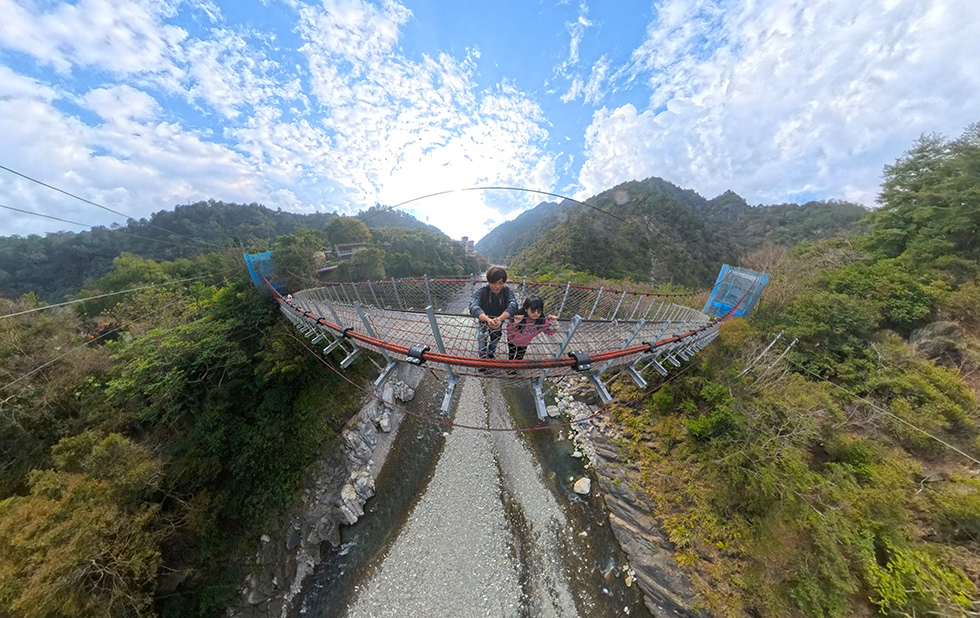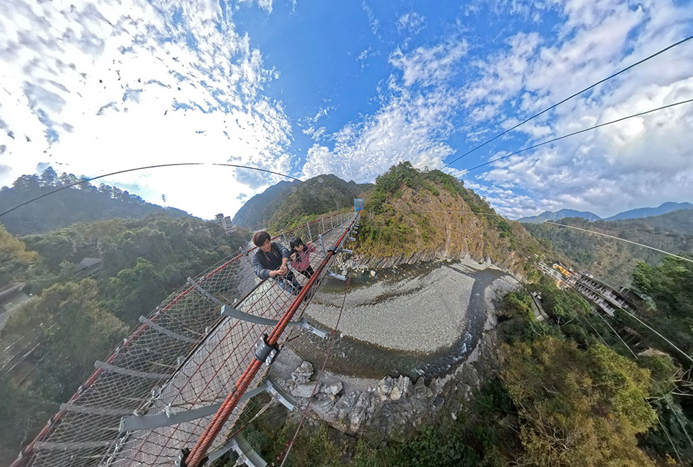 但著女兒走上吊橋看風景 . 這天風滿大的 . 且吊橋適逢地震後 . 其實還真有點小擔心一下 .