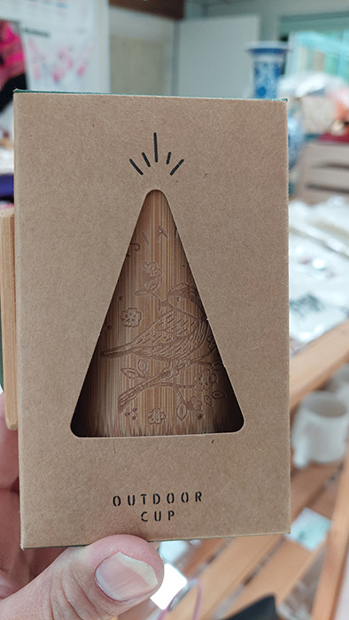 桂竹製作的杯子 . 上面的雕刻是赤腹山雀 . 我喜歡木雕 . 又雕刻赤腹山雀 . 就買給自己當紀念品喽 .